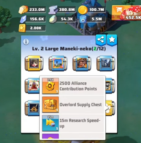 Je höher die Stufe, desto höher auch die Belohnung. Je mehr Tafeln geöffnet werden, desto mehr Belohnungen.