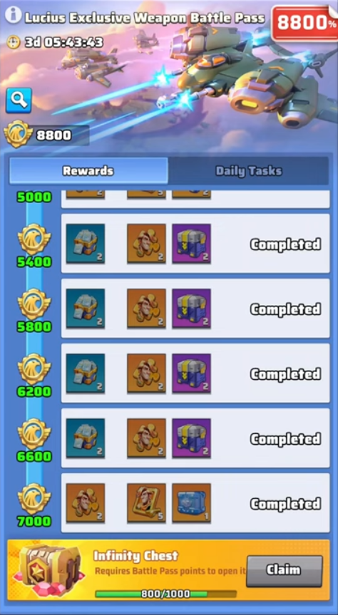 Hier habt Ihr die Chance, Waffen Auswahltruhen zu bekommen. Vor allem für die f2p Spieler sehr reizvoll, da nun auch die letzten drei Helden aus der vergangen Season ausgewählt werden können. Des Weiteren können Blaupausen erworben werden. Daher lohnt sich dieser sehr.