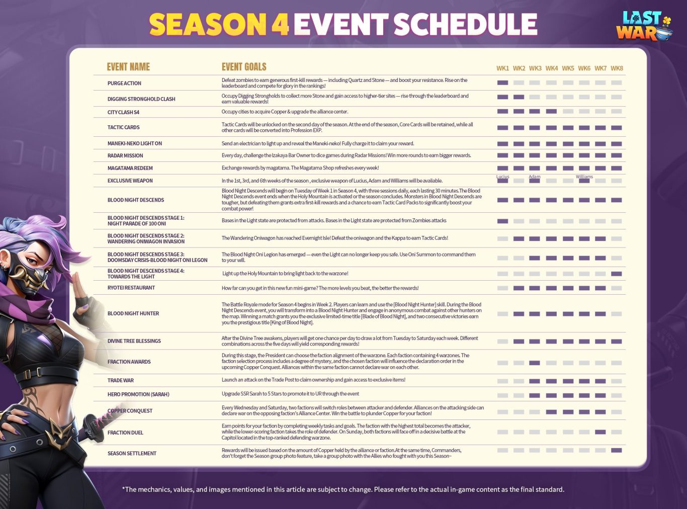 Wie bereits aus dem Ende der Season II bekannt, wird es auch diesmal wieder den Schwarzmarkt, das Champions Duell und das Bingo Event geben. Des Weiteren kommen noch einige Neuerungen dazu, wie Allianz Events und stärkere Zombies.