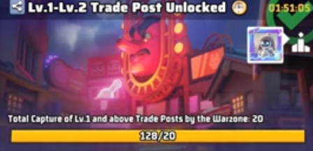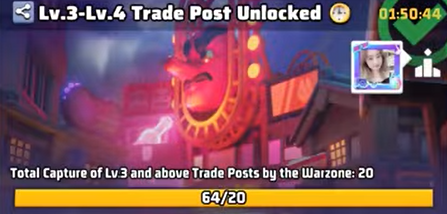 Condition: Total Capture of Lv.1 and above Trade Posts by the Warzone 20.