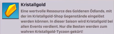 Kristallgold ist eine seltene Ressource der Goldenen Ödnis, die zum Kauf von Gegenständen im Kristallgold-Shop verwendet wird.